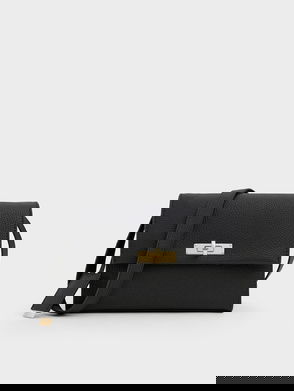 Fashionable, functional and great with a pretty frock, this sage green leather crossbody allows for a quick style upgrade when needed. Boasting an eye-catching cut, the gilded embellished push-lock feature gives this bag a vintage feel. Imagine it against a lace-trim dress for a dainty and stylish look.