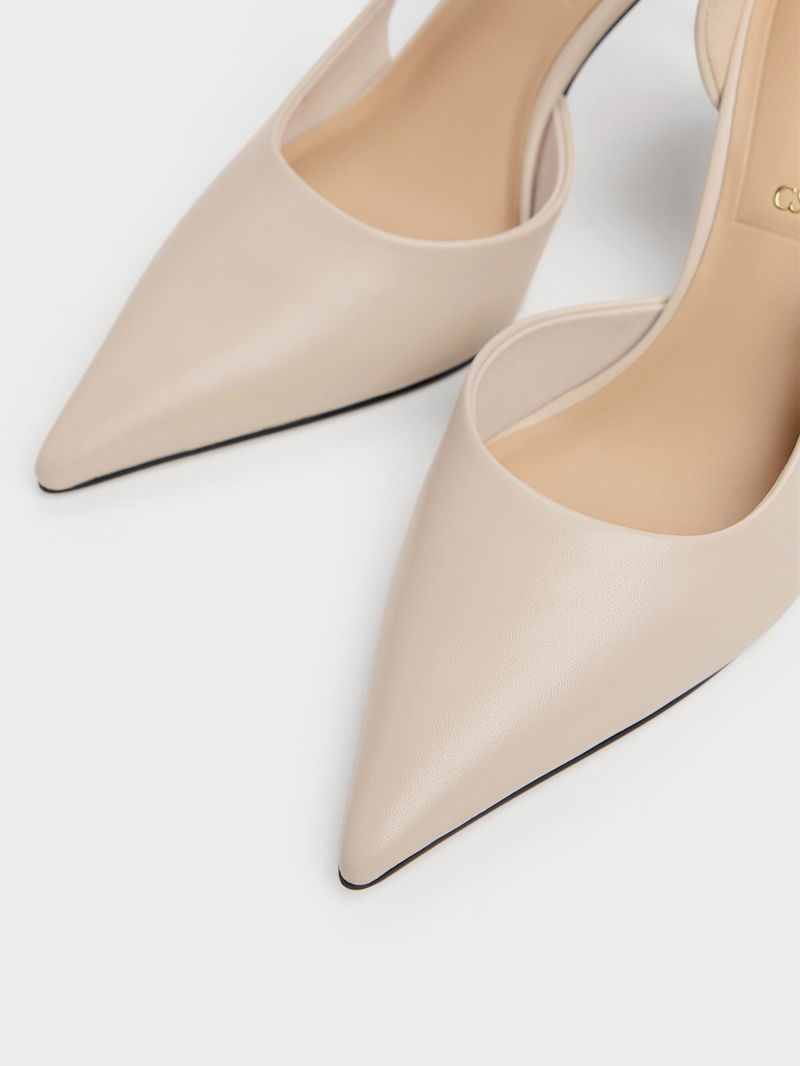 These d'Orsay pumps in oat are made with genuine leather and feature sharp pointed toes, side buckles and slender stiletto heels.