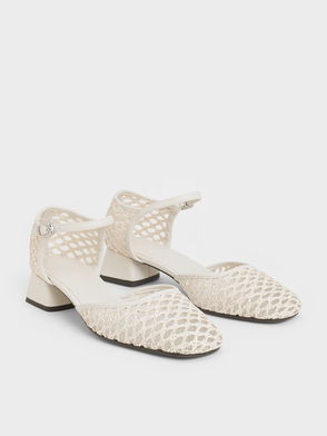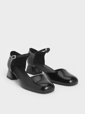 Leather Square-Toe D'Orsay Ankle-Strap Pumps