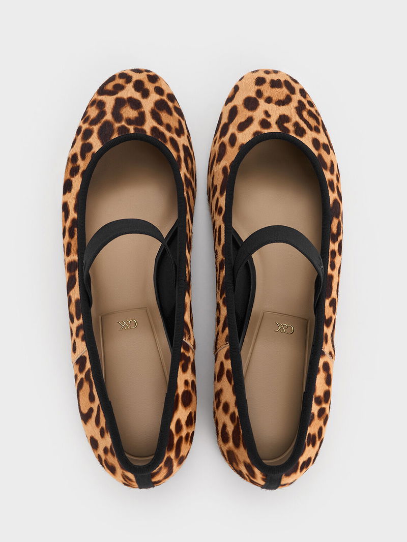 Leopard-Print Textured Mary Jane Flats