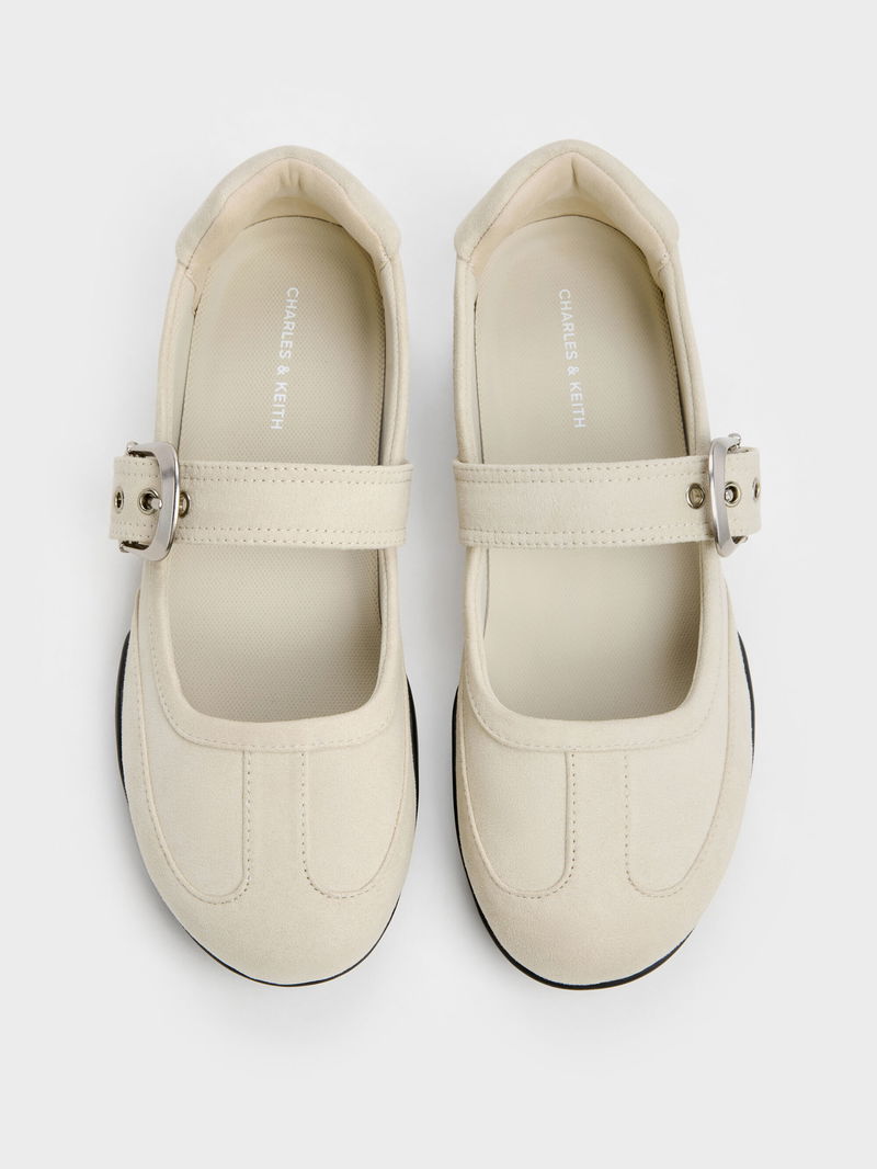 These Louise Mary Jane sneakers in chalk are made with faux suede and feature panelled uppers, thick grommet buckled straps, soft round toes and a sporty-chic aesthetic. Offering both style and comfort, they are great for on-the-go days.