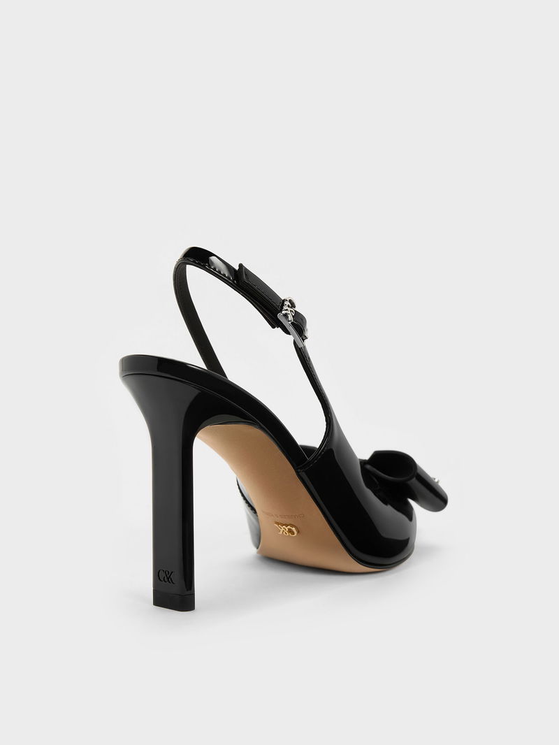 Lu Patent Leather Bow Blade-Heel Slingback Pumps