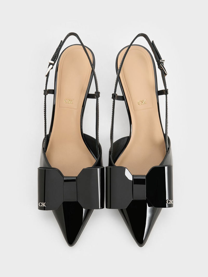 Lu Patent Leather Bow Slingback Pumps