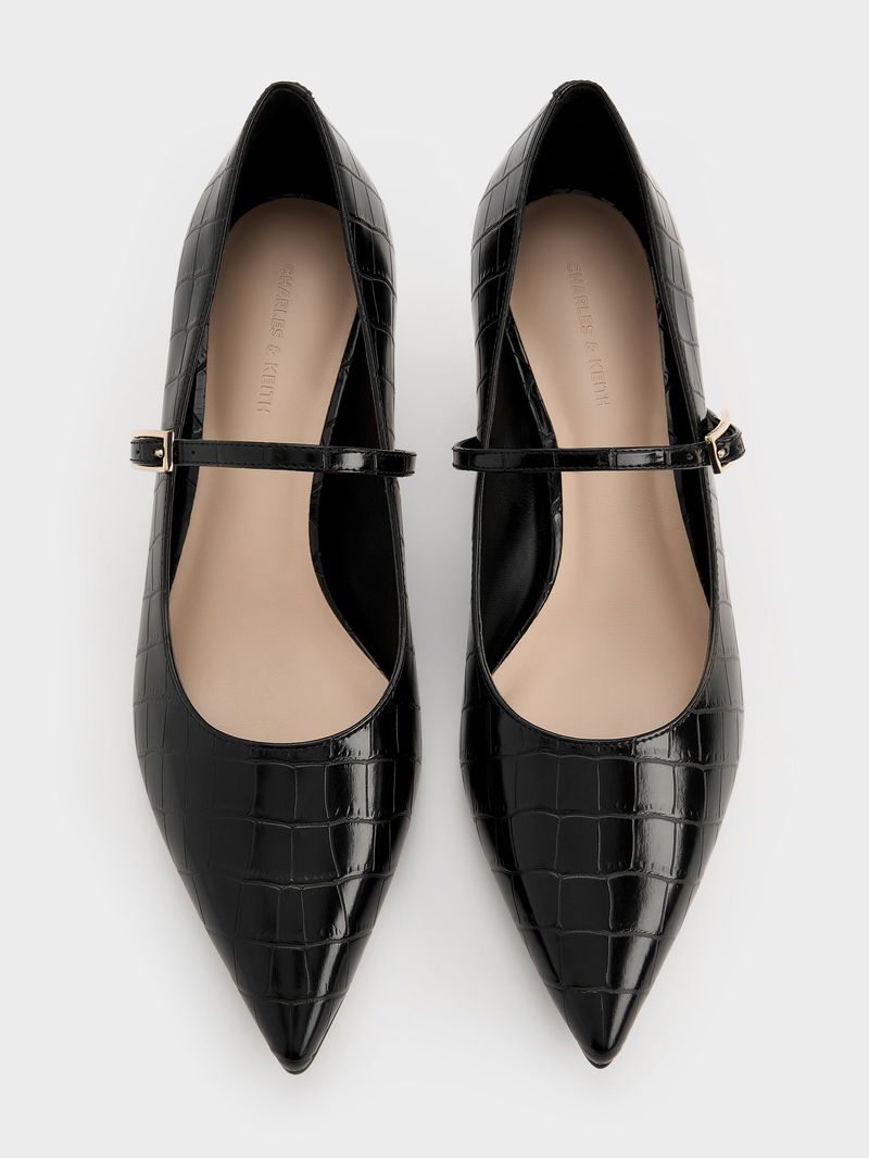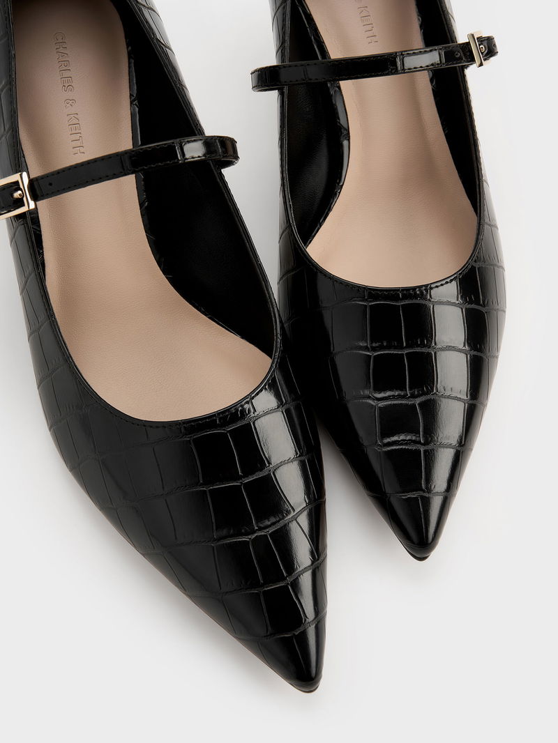 Luciana Croc-Effect Mary Jane Pumps