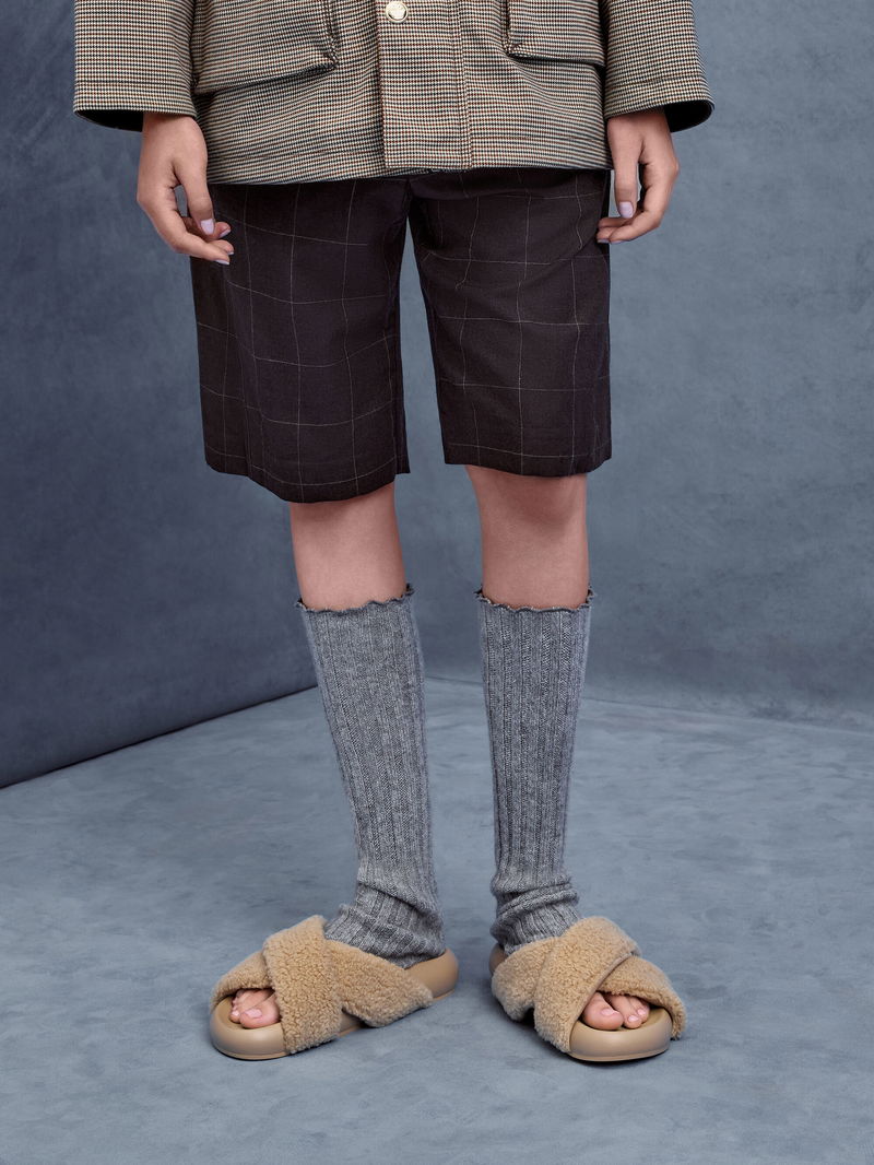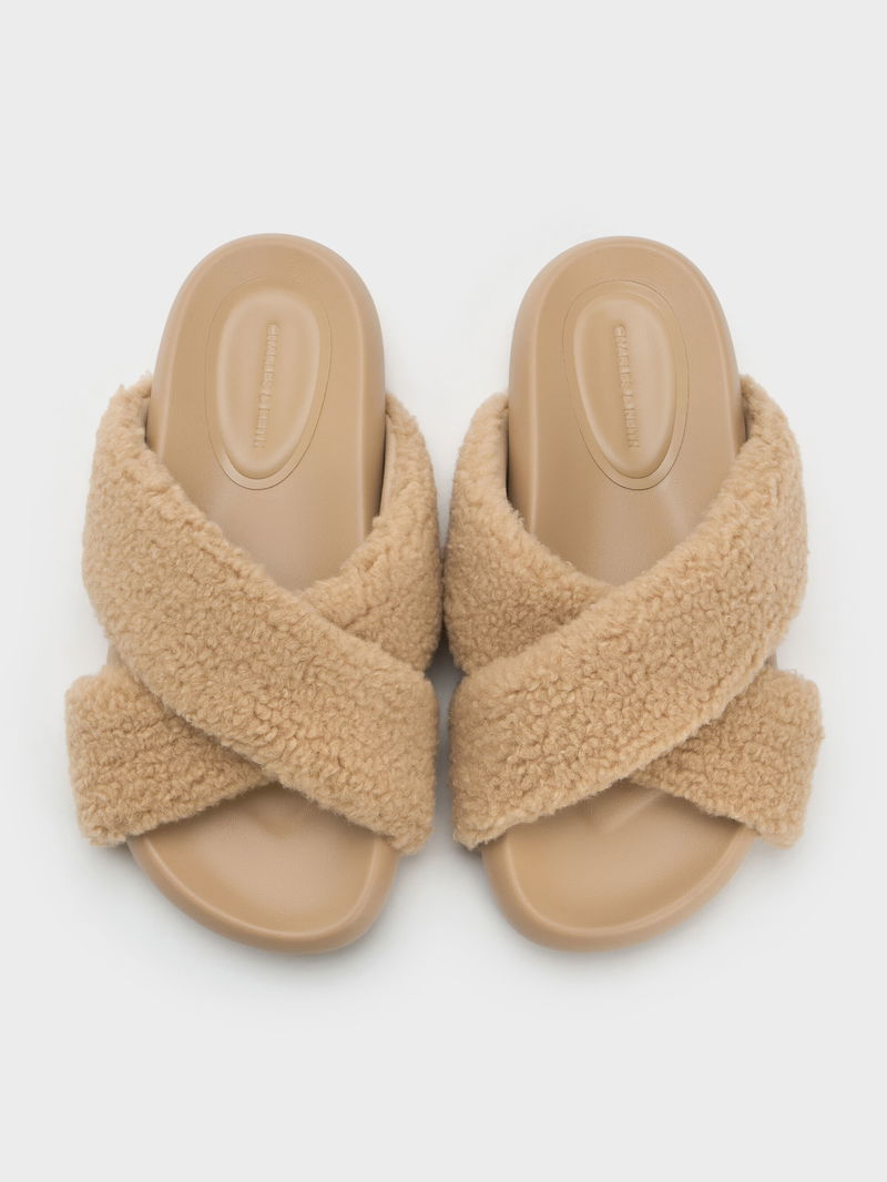 Lumi Faux Shearling Crossover-Strap Slide Sandals