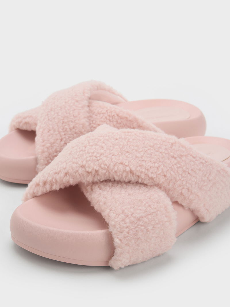 Lumi Faux Shearling Crossover-Strap Slide Sandals