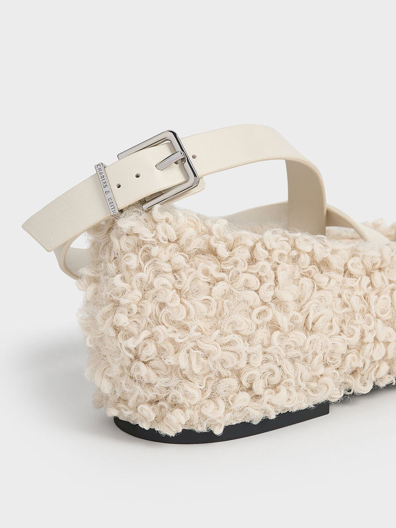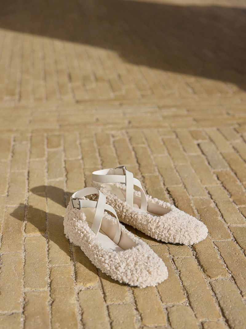 Furry shoes are not just for fall and winter -- in fact they offer a year-round appeal and are perfect for injecting a playful touch into any outfit. For colder days, these chalk ones will match perfectly with thick, cosy socks while in warmer weather, you can wear them on their own. Complete with thick crossover straps that are also adjustable and wrap all the way around the ankles, they offer an extra secure and comfortable fit. The best part? They are made with recycled faux shearling that will make you look good and feel good.