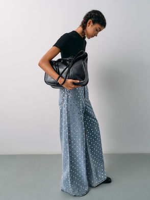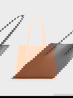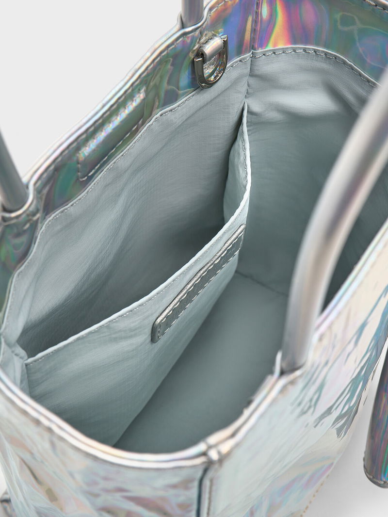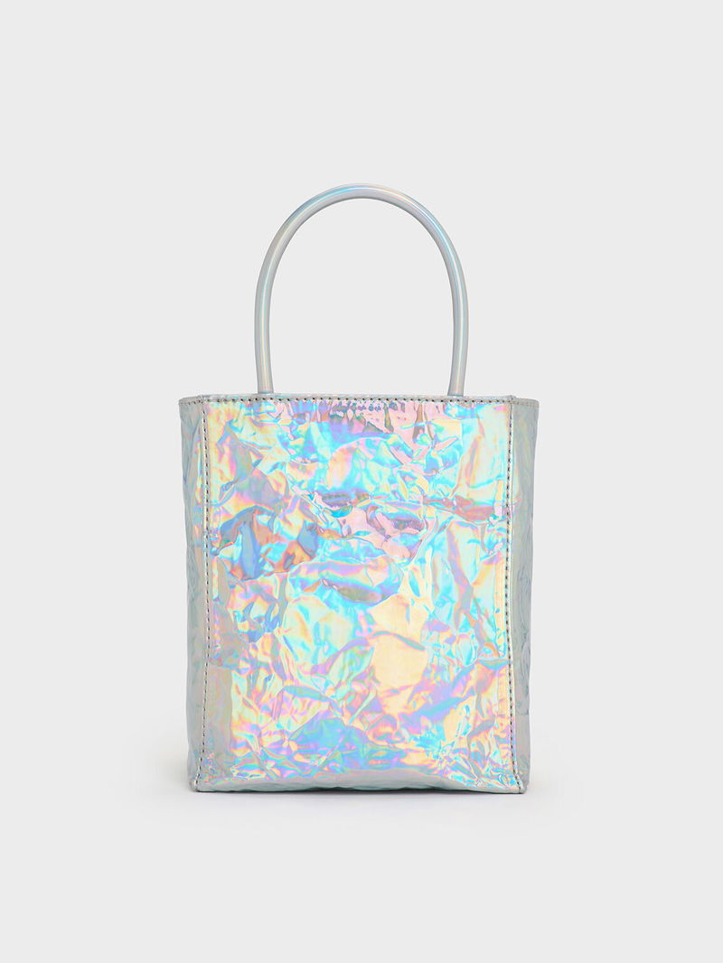 Matina Holographic Crinkle-Effect Elongated Tote Bag