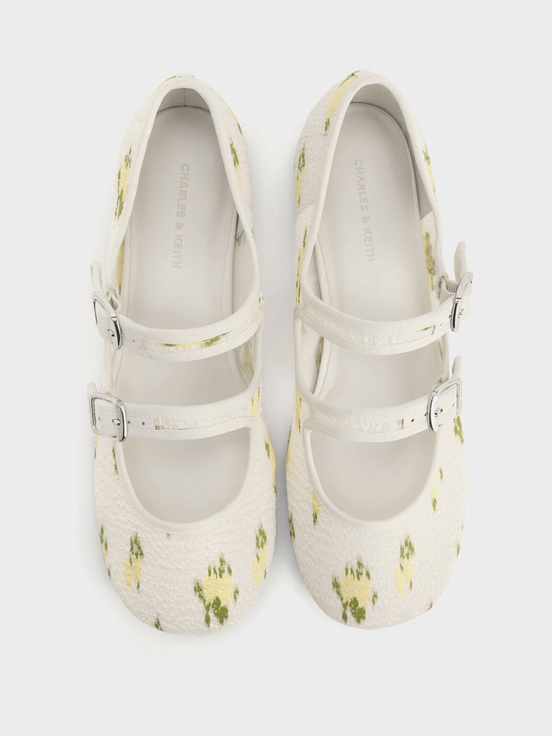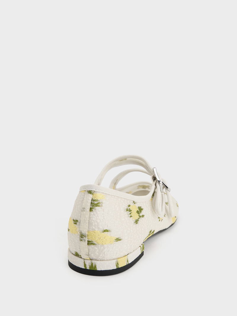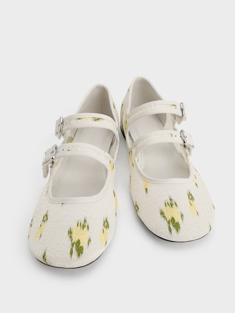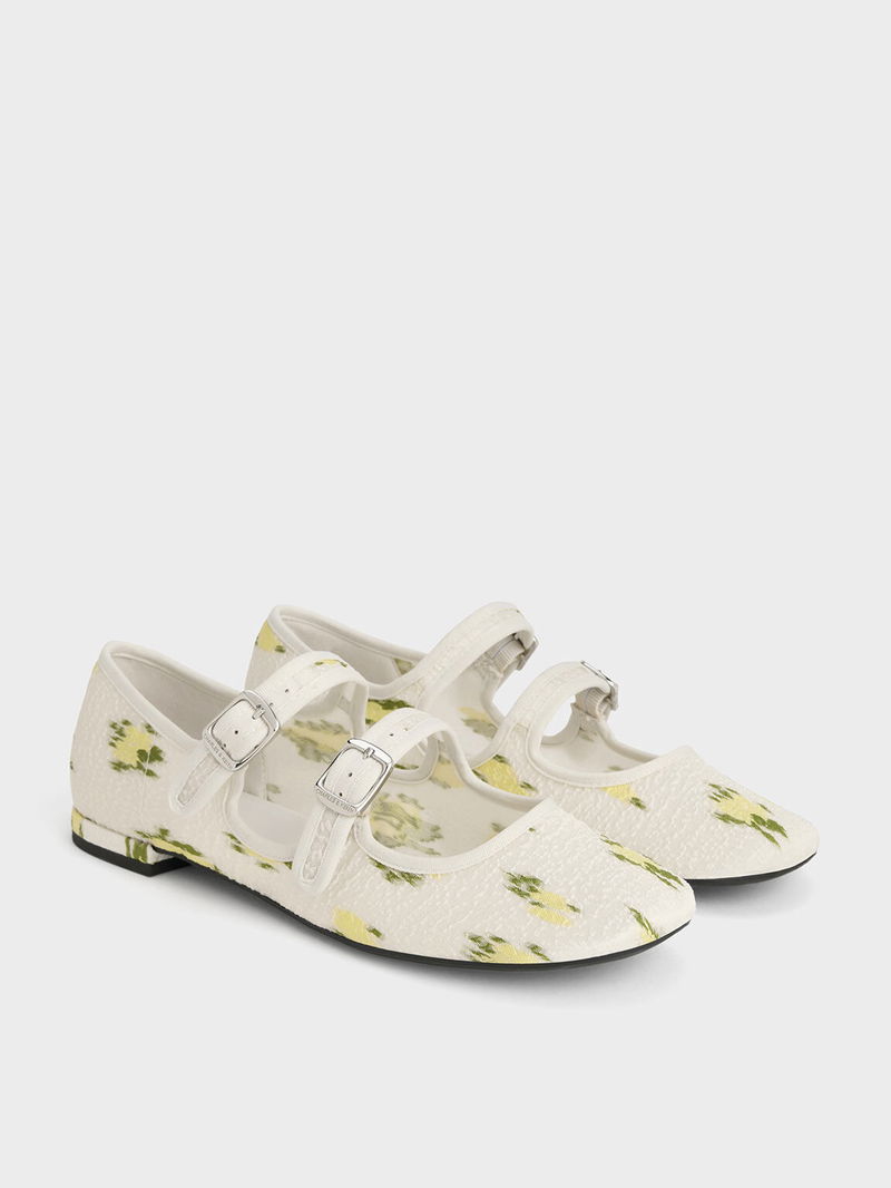 Mesh Floral-Print Double-Strap Mary Jane Flats