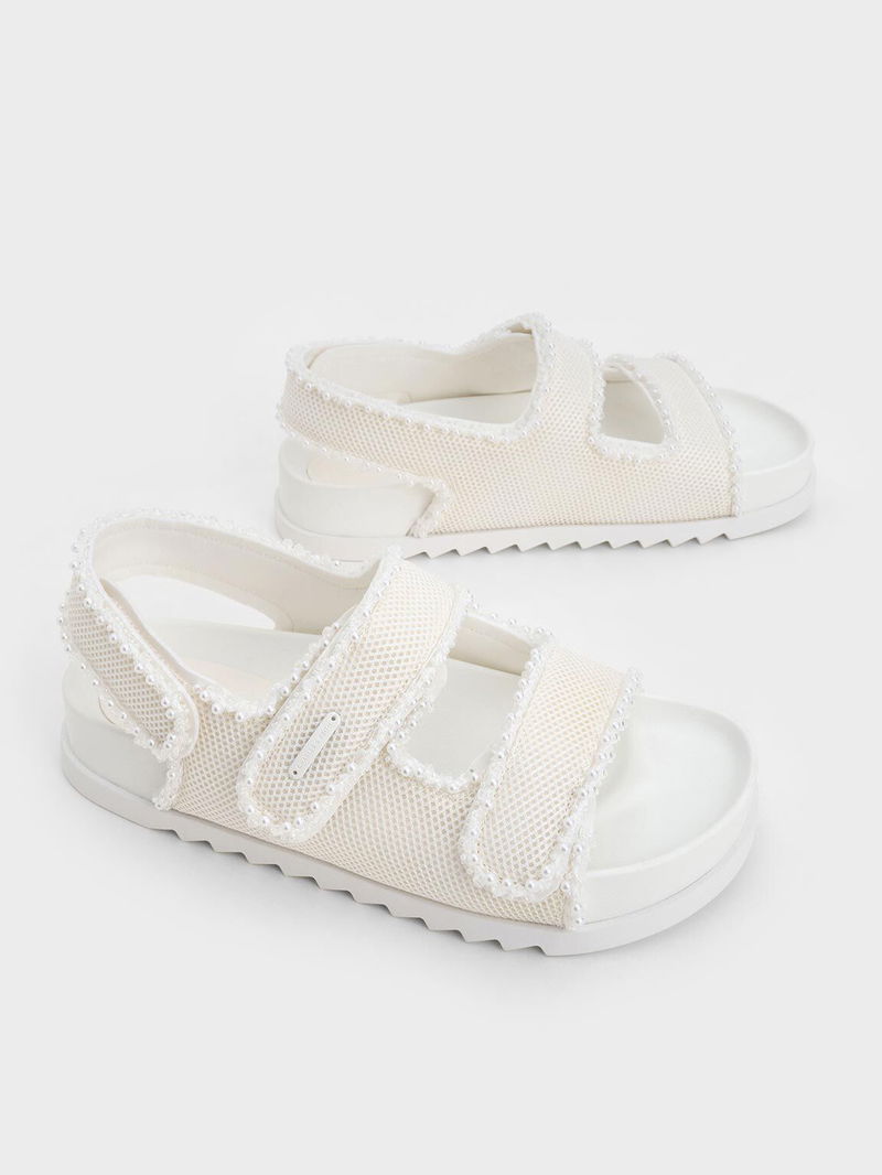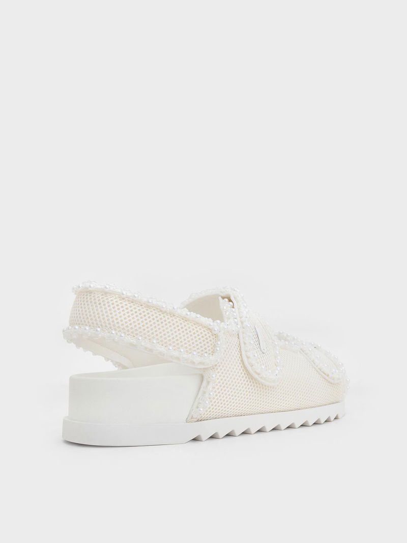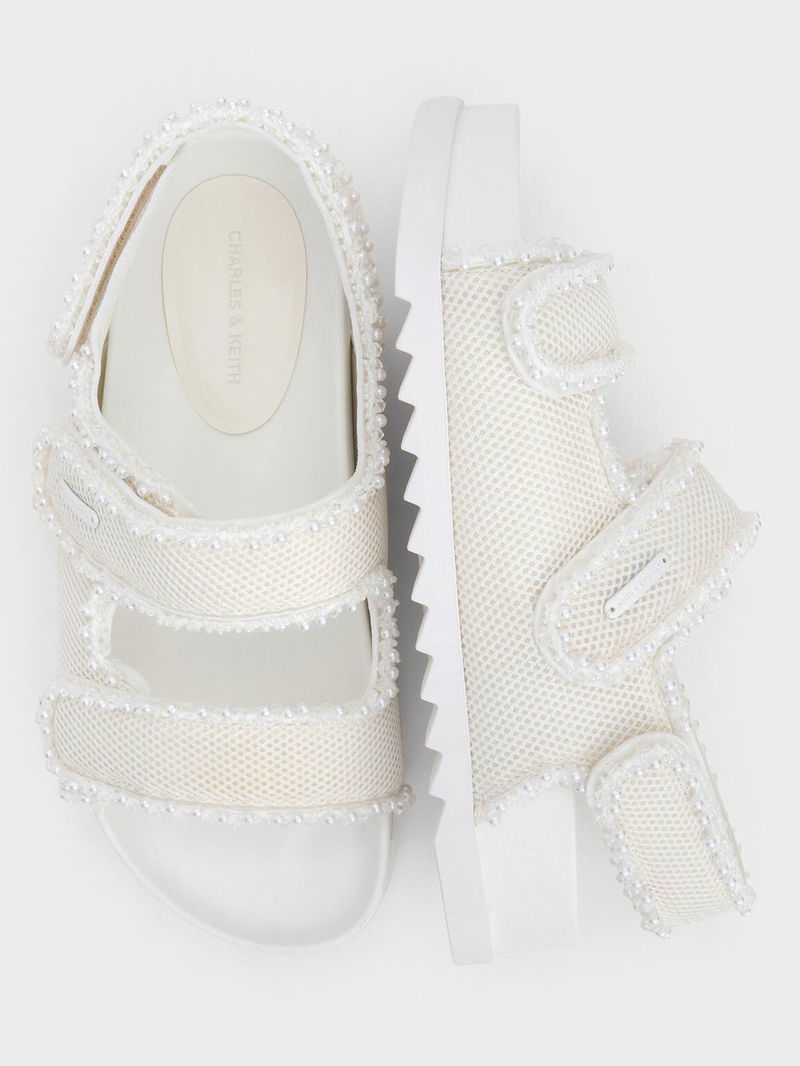 Mesh Pearl-Embellished Flatform Sandals