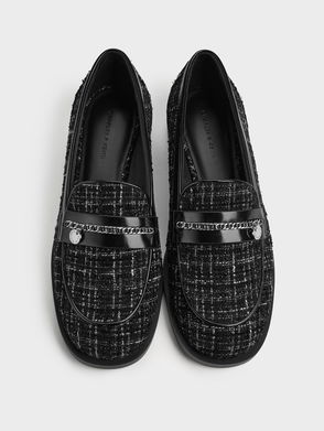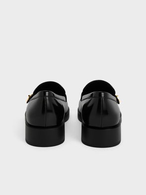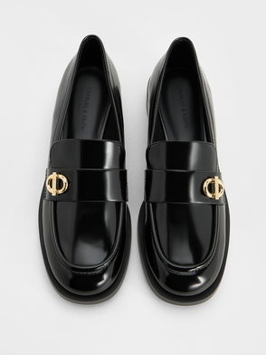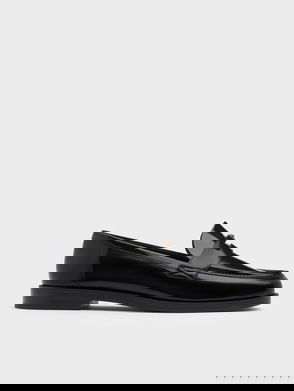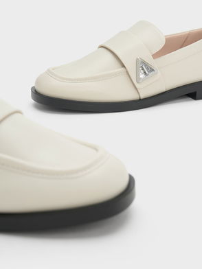It's the little details that add instant edge to any look. Case in point: the nifty metallic trim on the heels of these white loafers. Spruce up your evening outfit in a flash when you style this sophisticated pair with black cropped wide-cut pants and a white ruffle top.
