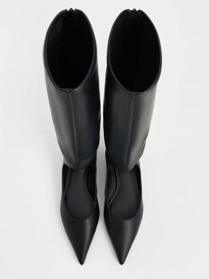 A stiletto heel adds height and a whole lot of street cred to these dark green ankle boots. Pair them with frayed jeans to show off the eye-catching metallic details.