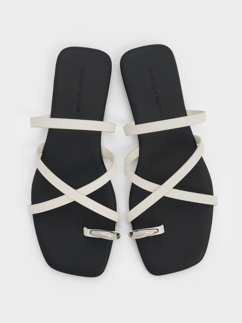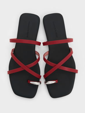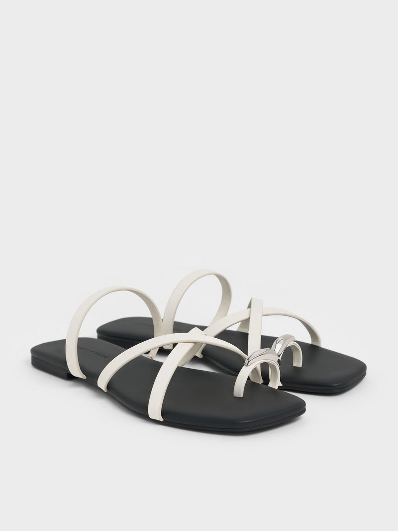 Metallic-Accent Strappy Toe-Ring Sandals