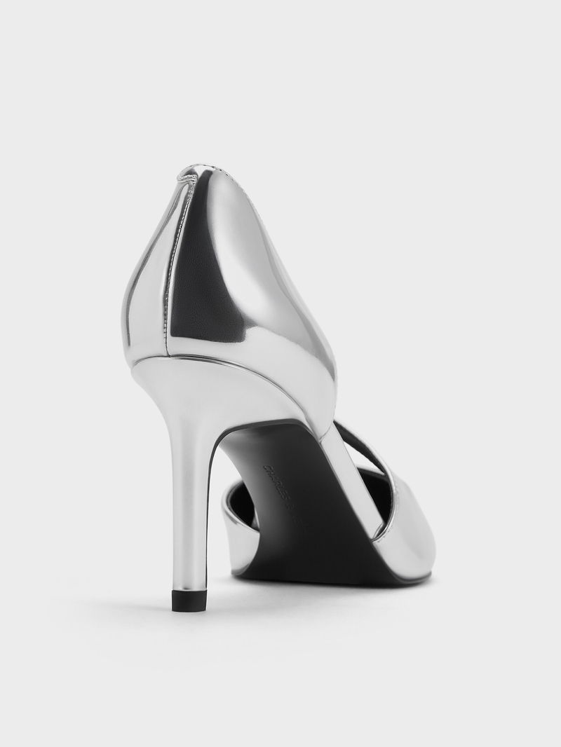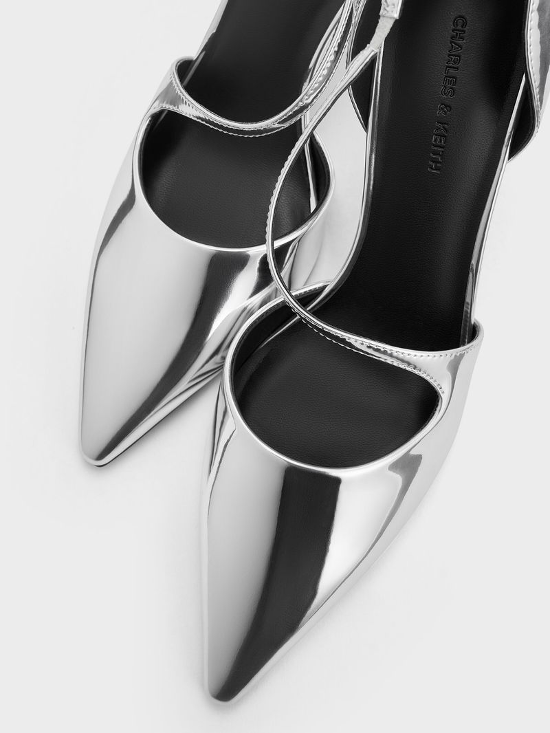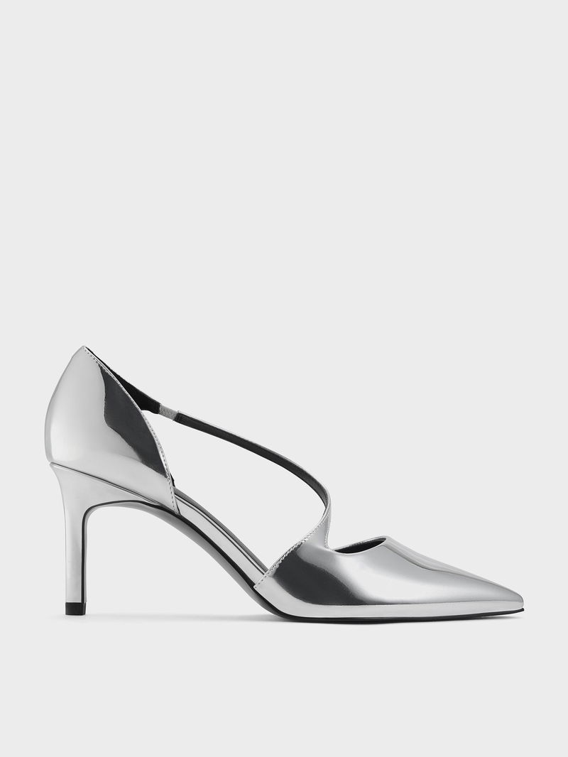 Metallic Asymmetric-Strap D’Orsay Stiletto Pumps