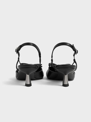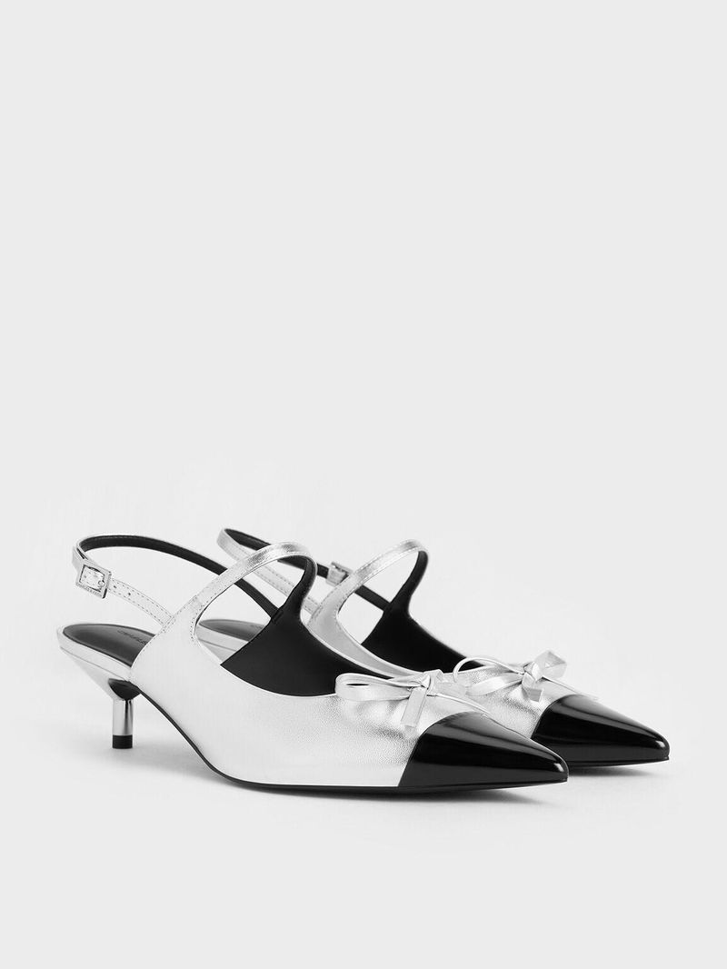 Metallic Bow Cap-Toe Kitten-Heel Slingback Pumps