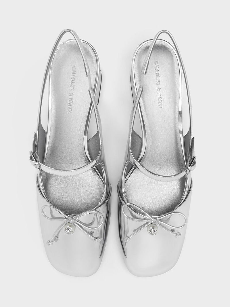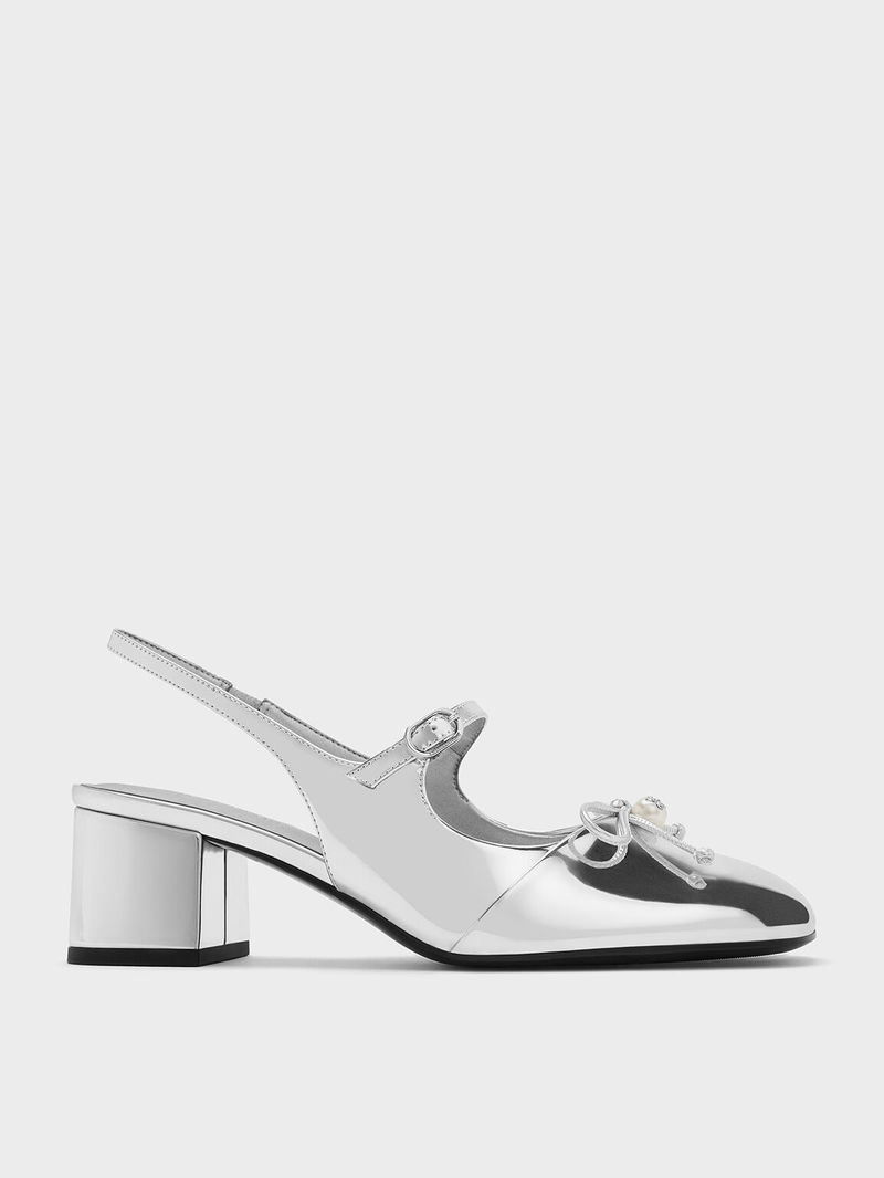 Metallic Bow Crystal-Pearl Slingback Mary Jane Pumps