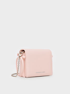 The love for our mini long wallets shows no sign of waning, especially when they come in a delightful powder pink hue. This particular number also offers up some sass thanks to the silver hardware decorating the magnetic closure. Slip it into your tote for the day, carry it by hand, or throw on the chain strap and take it into the night.