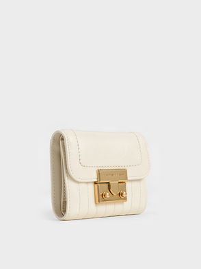 Good things come in small packages. This cool blue wallet crowned with a metallic handle pairs well with most after dark ensembles. Non-adjustable strap (detachable).