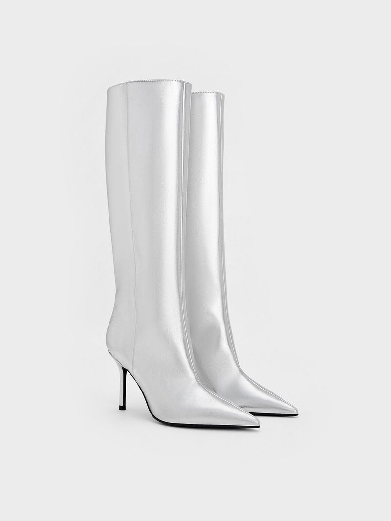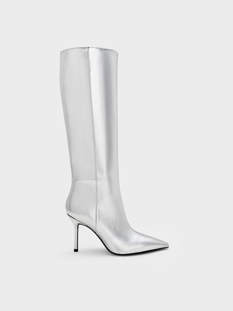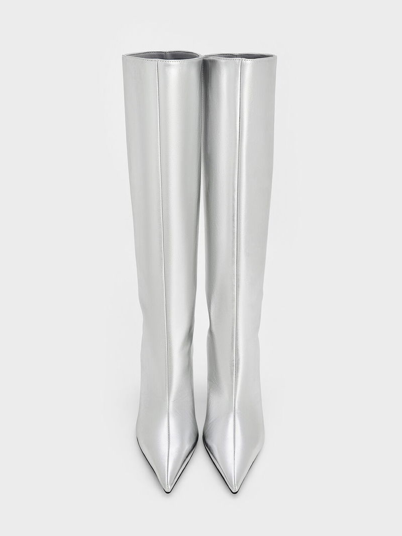 Metallic Pointed-Toe Stiletto-Heel Knee-High Boots