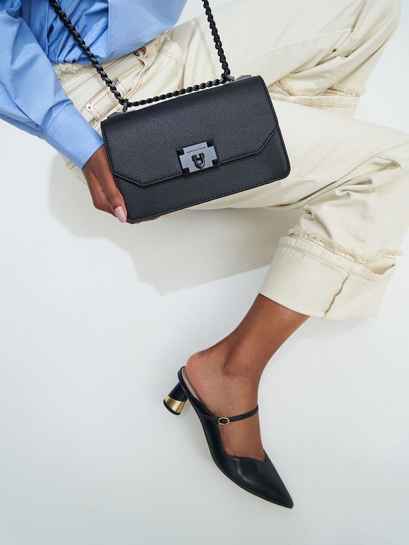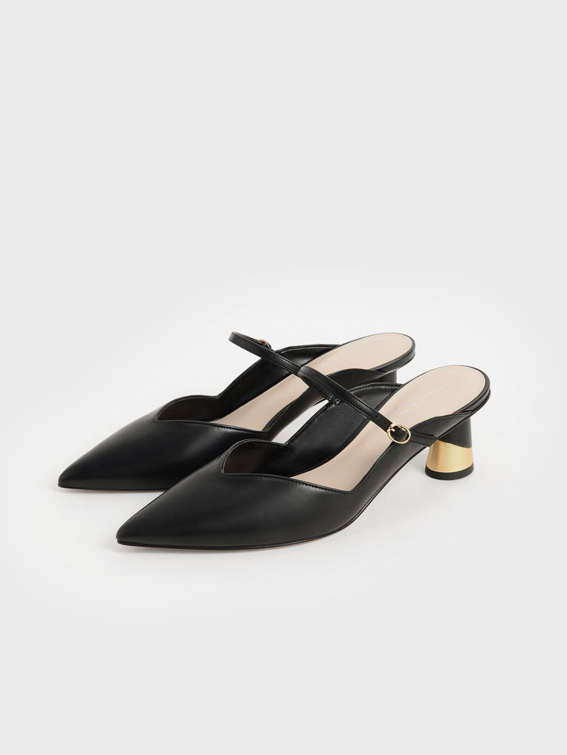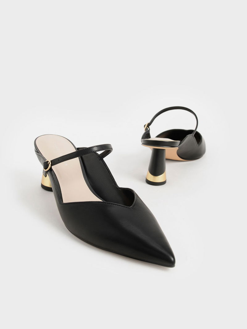 Let your heels do all the talking this season when you have these open-back mules at your disposale. Boasting a pointed-toe design that elongates your frame instantly, these gems also feature a special metallic accent at the heel that exudes a luxurious feel. We are also loving the adjustable front strap as added design element to subtly enhance its overall look. Step out in style when you team them with a cropped jumpsuit and an envelope bag.