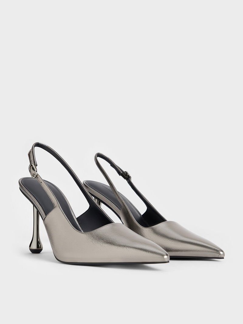 Metallic Sculptural-Heel Pointed-Toe Pumps