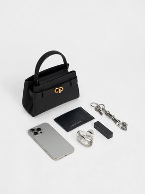 A bag that's sure to give you a spring high. Featuring a striking print and an acrylic handle, this wristlet clutch delivers the right amount of statement to any outfit. Partake in a fearless experimentation with colour when you style it with juicy orange maxi dress and strappy sandals.