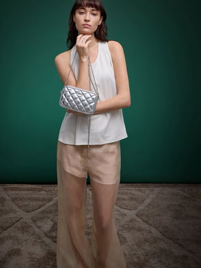 Add extra style points to your daytime look with this sky blue studded mini crossbody bag. Rock it with a midi dress and your favourite strappy sandals. Top tip: the inner lining comes in a white finish that you can flip around for a quick style update.