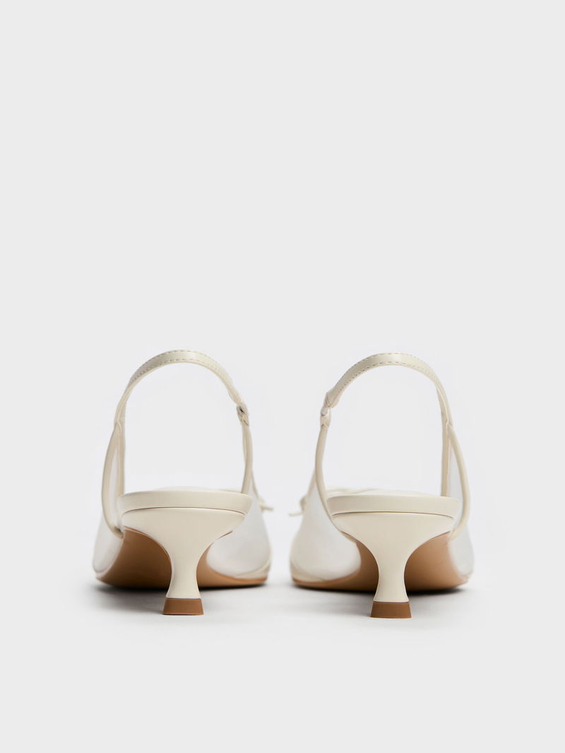 These Mulligan slingback pumps in chalk are made with mesh and feature dainty bow details, low kitten heels, elasticised slingback straps and elegant almond toes. Their classic silhouette and feminine details will enhance dressy looks with subtle sophistication.