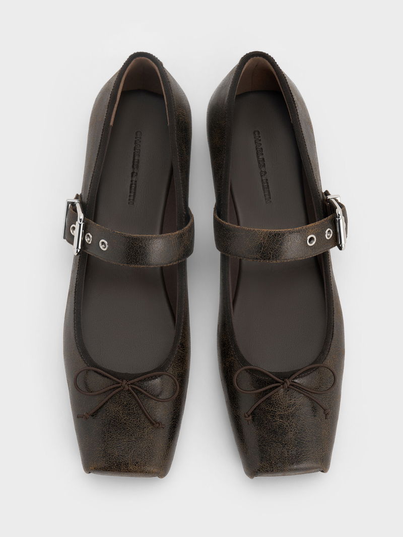 Myler Crinkle-Effect Bow Square-Toe Buckled Mary Janes