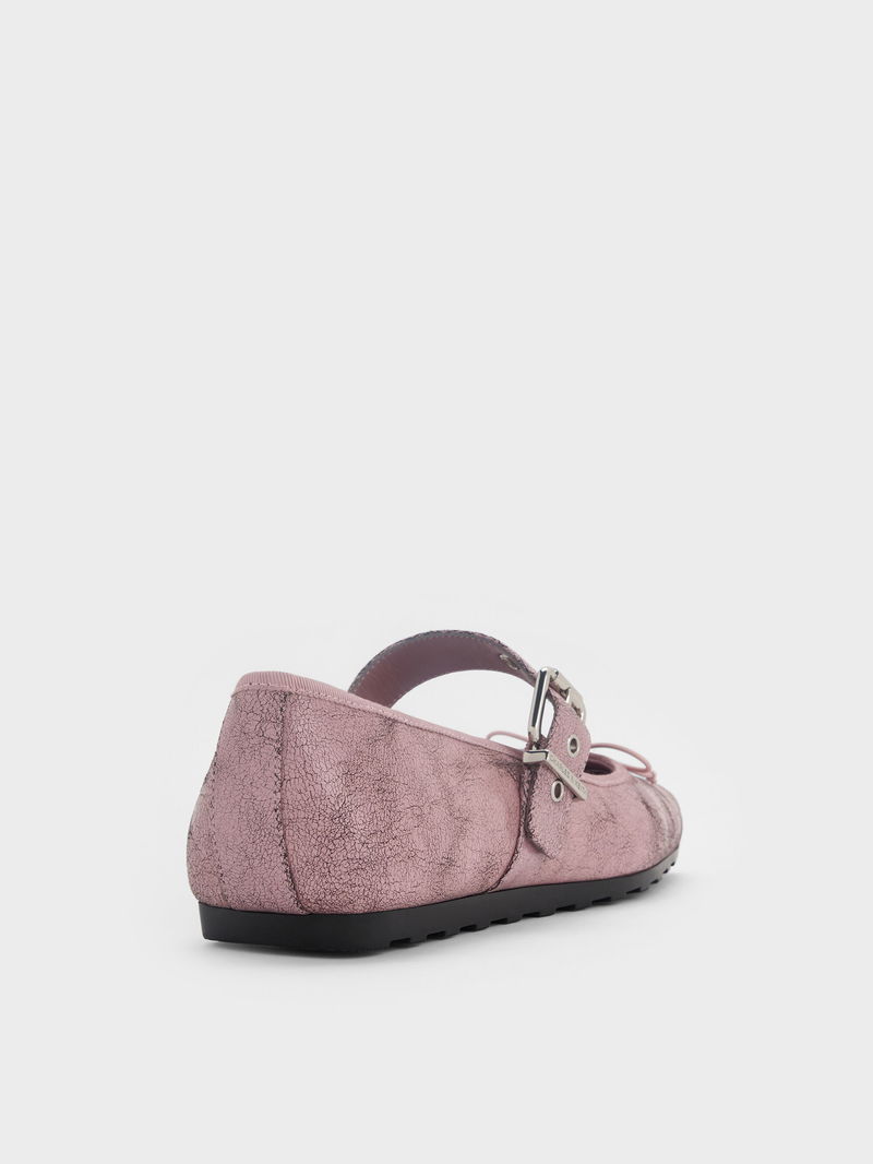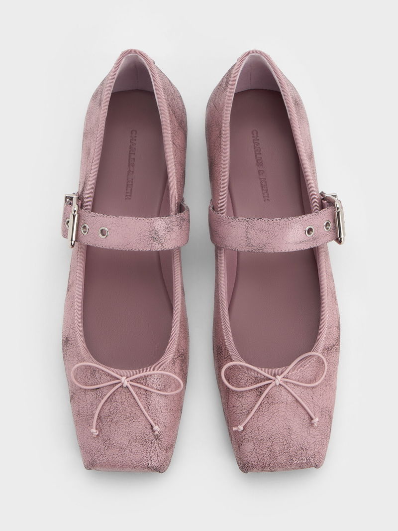 Myler Crinkle-Effect Bow Square-Toe Buckled Mary Janes