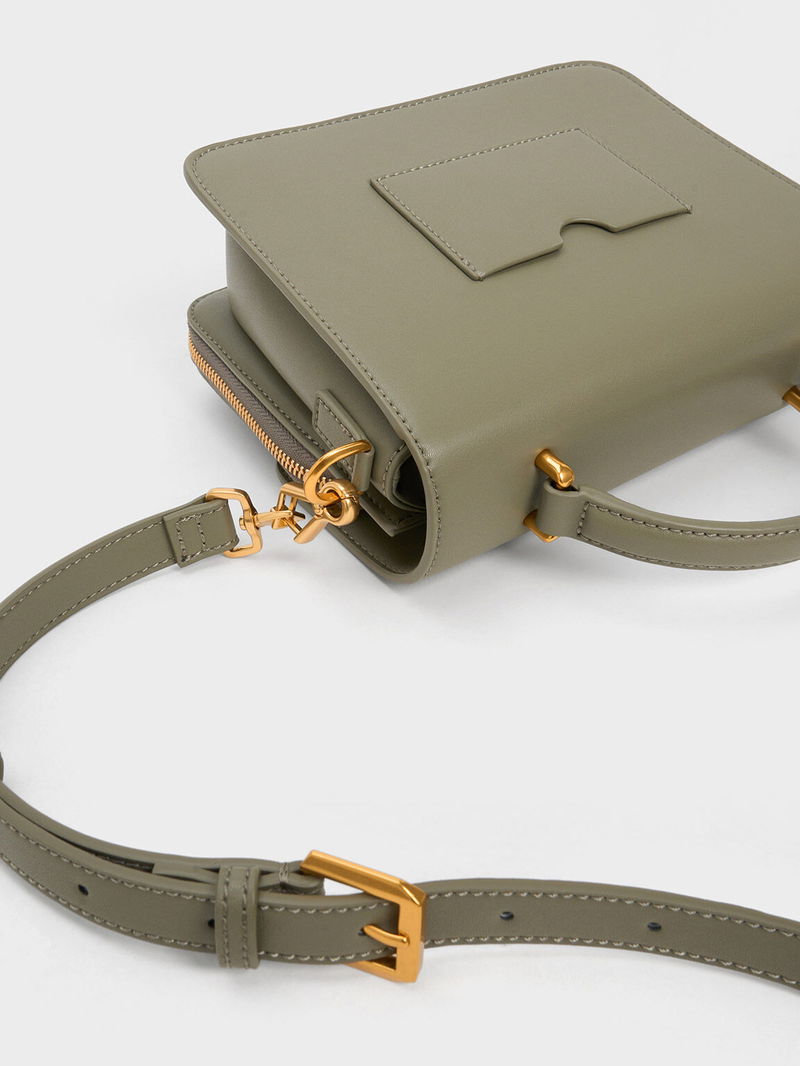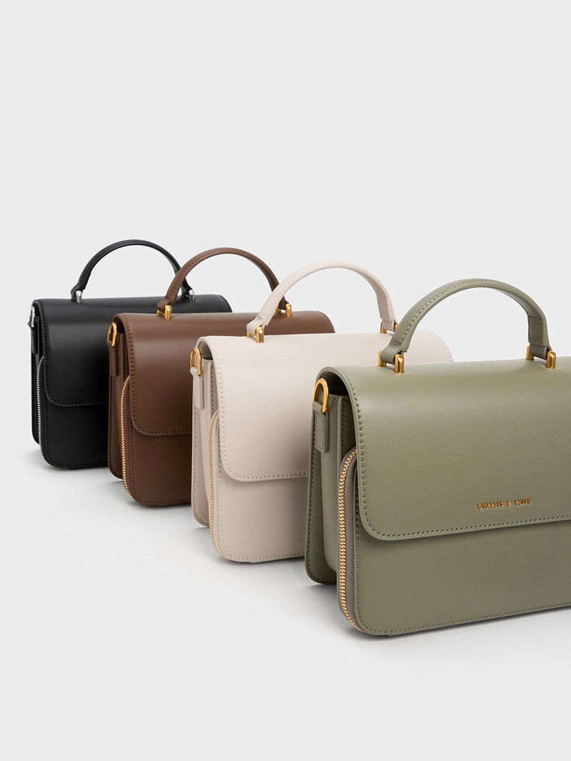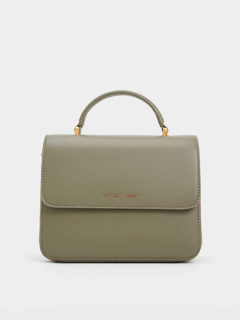 From the minimal silhouette to the elegant finish, this Octovia front flap bag is easy to love. Its classic design lets the clean lines stand out, complemented by a khaki finish and gold-toned hardware for a polished look. To add subtle visual interest, the CHARLES & KEITH logo is etched on the front. Equipped with a sturdy top handle and detachable shoulder strap, you can wear this bag in various ways for all your occasions.