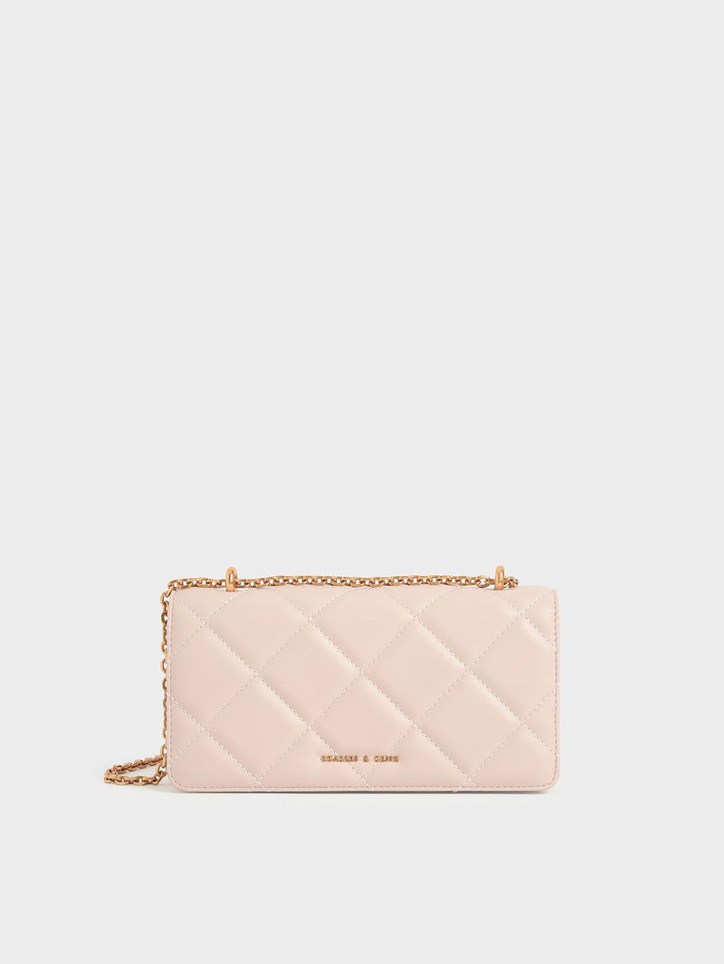Quilted to perfection and finished in an elegant powder pink hue, our Paffuto long wallet brings an elevated alternative to your quotidian ensemble. Compact enough to fit into any bag, it is also spacious enough to carry your daily essentials around with ease. Attach the chain handle and it can instantly fly solo as a micro bag. We would love to see you style it with a smock dress and pointed-toe mules for a graceful look.
