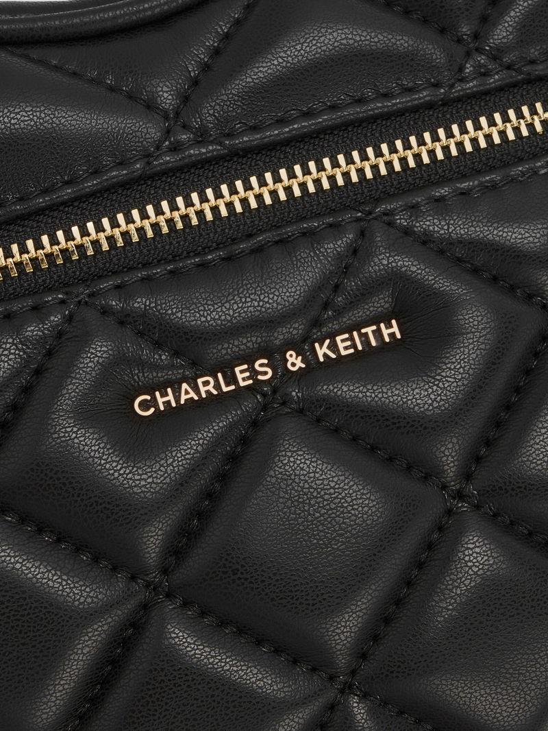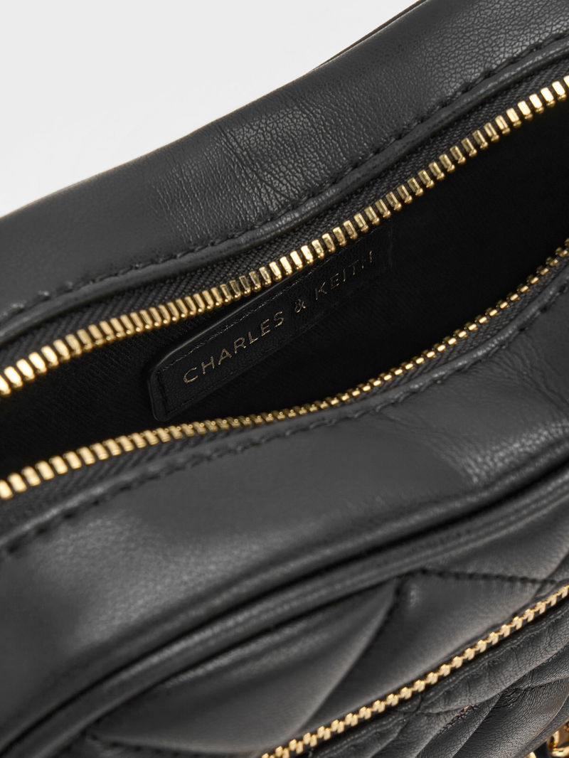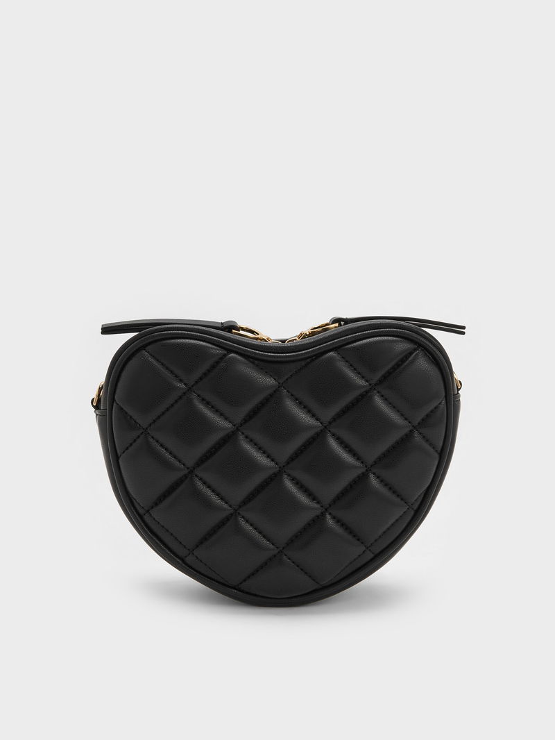This Paffuto crossbody bag in black features a quilted finish, a heart-shaped design, an adjustable braided chain strap, and a secure zip closure. Bring it from desk to dinner to keep your look chic and refined throughout the day.
