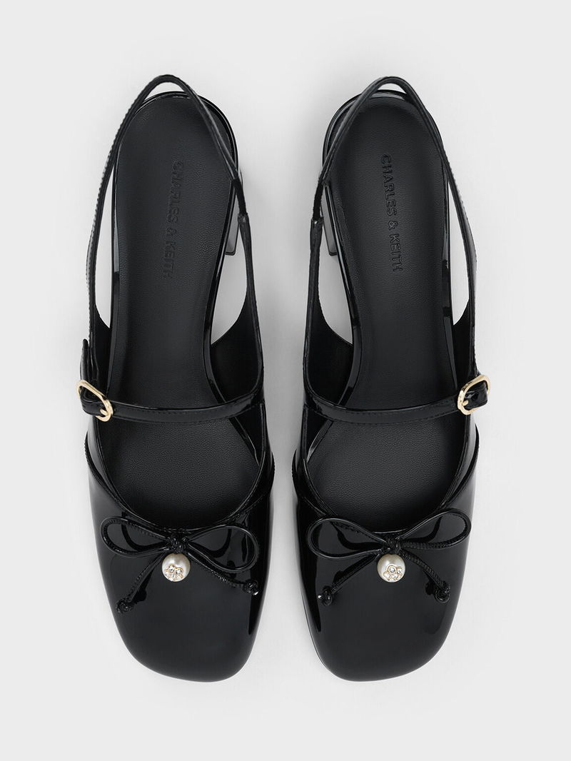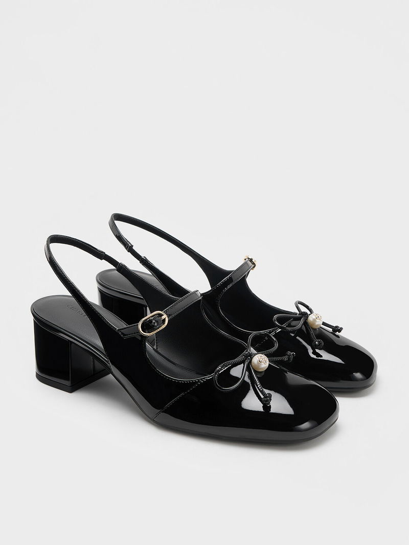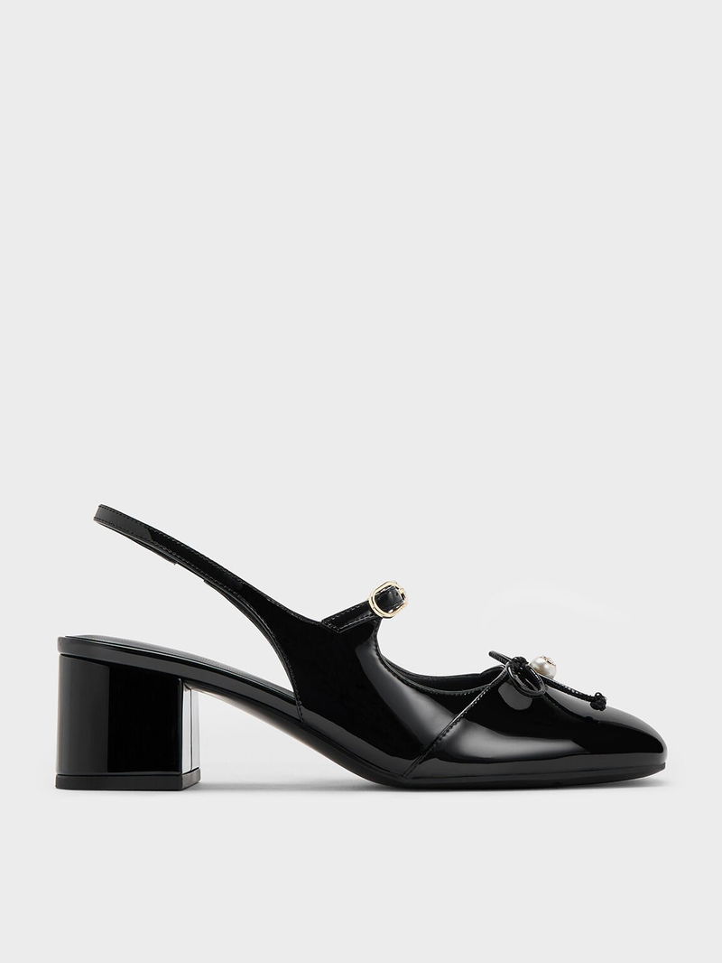 Patent Bow Crystal-Pearl Slingback Mary Jane Pumps