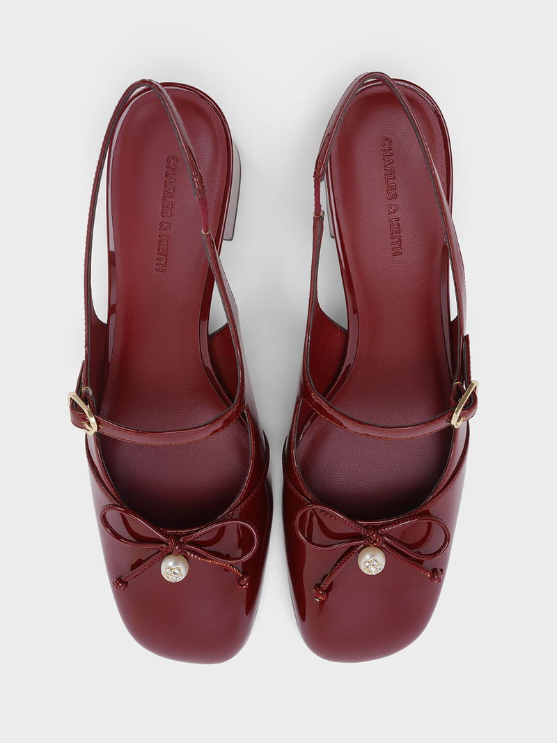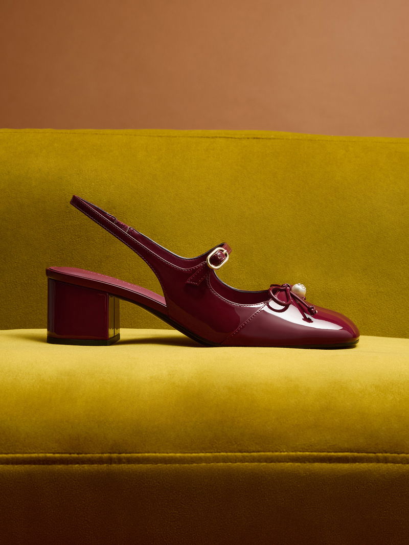 Patent Bow Crystal-Pearl Slingback Mary Jane Pumps