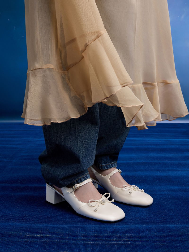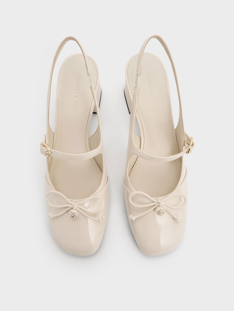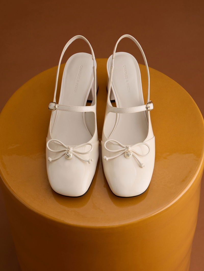 Patent Bow Crystal-Pearl Slingback Mary Jane Pumps