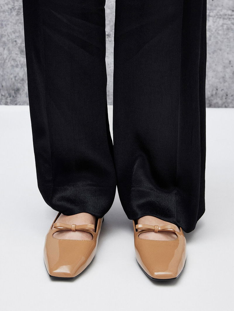 Patent Bow Square-Toe Ballet Flats
