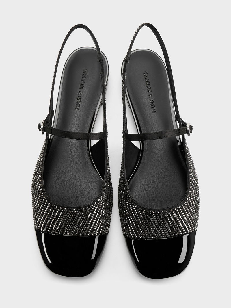 Pearl & Crystal-Embellished Cap-Toe Slingback Mary Jane Flats