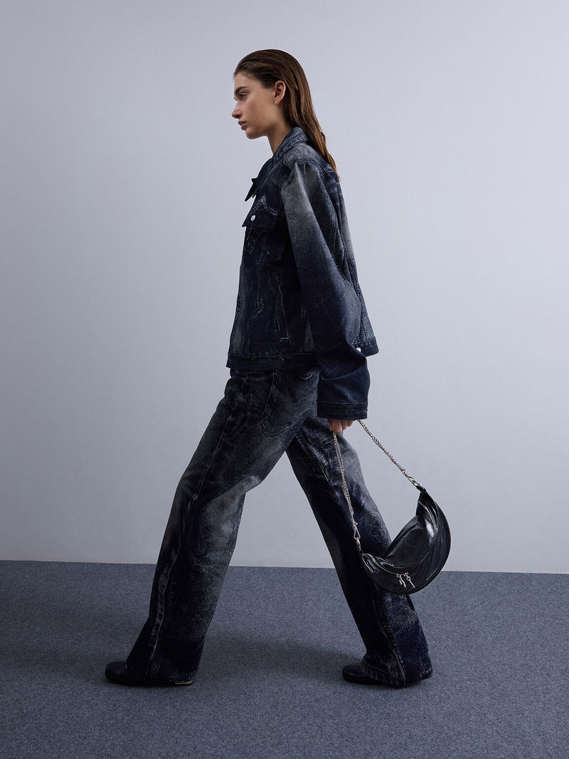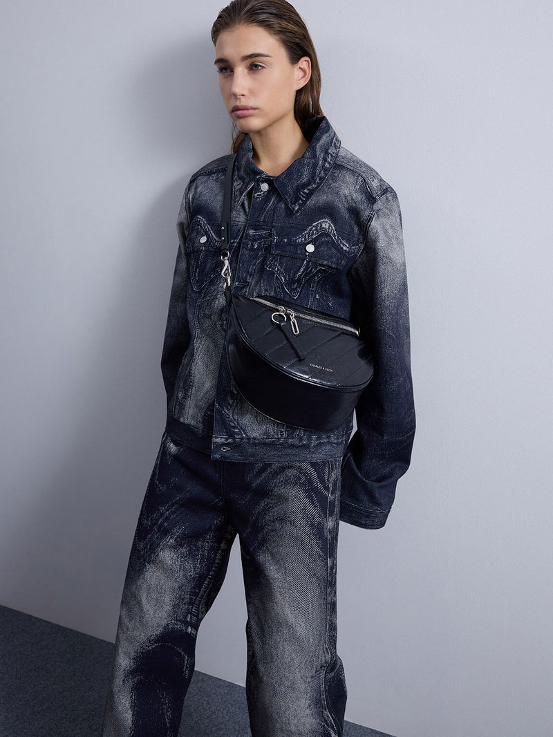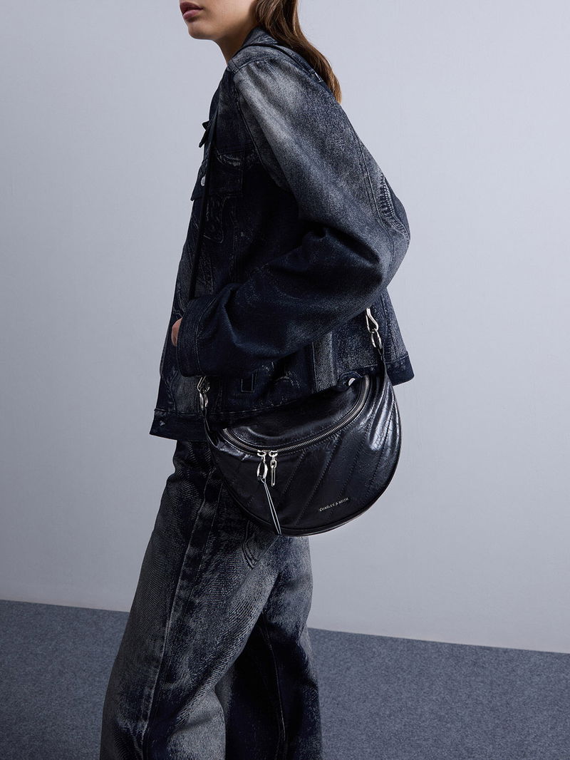 Philomena Crinkle-Effect Half-Moon Crossbody Bag