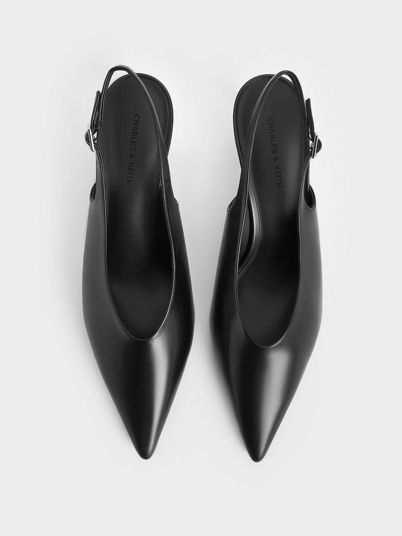 Pointed-Toe High-Vamp Slingback Pumps
