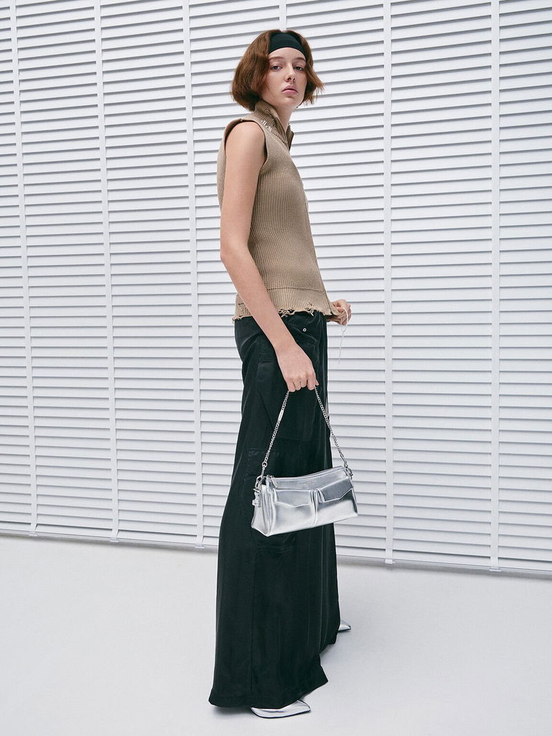 Rachel Elongated Front-Pocket Chain-Handle Bag