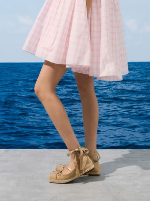 Nail a head-to-toe summer look when you pair these orange printed raffia sandals with a maxi dress and a matching head scarf.
