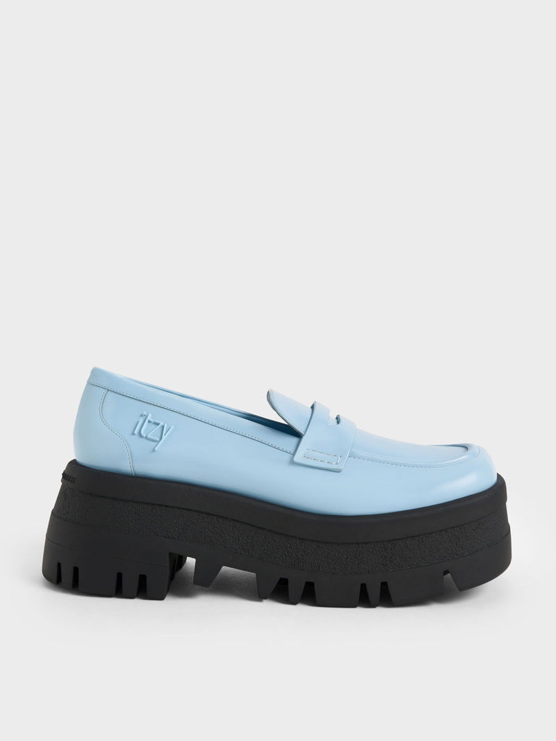 For a exclusive collaborative collection with ITZY, the iconic Rainier loafers return in brand new colourways.We have added chunky lug soles and a pretty blue finish to the classic penny loafers to create this statement pair that will keep you on top of your style game no matter the season. Let it break up your dark and monochromatic outfits during the colder months, and pair them with sweet floral dresses when the temperature goes up.