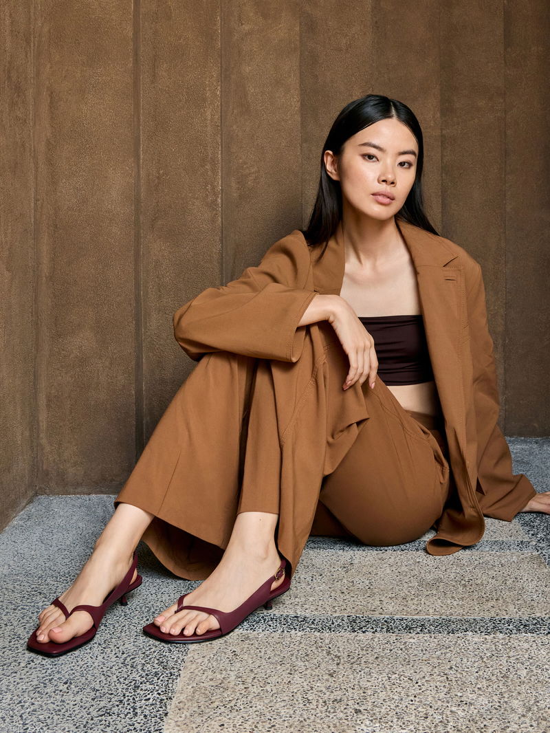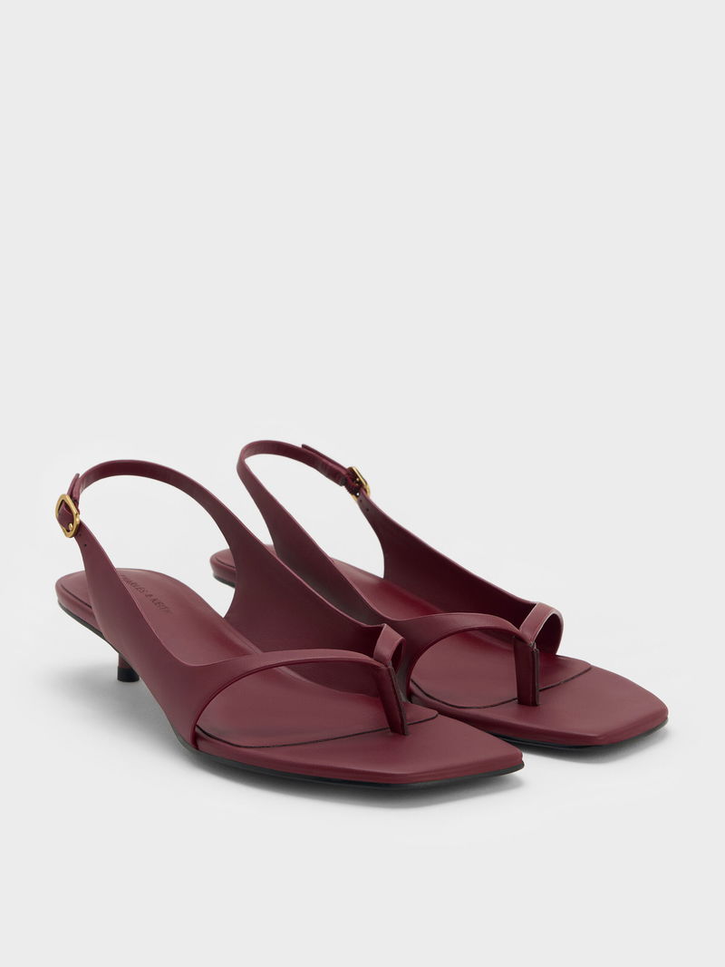 These burgundy Rayne slingback sandals are perfect for adding a rich pop of colour to your warm-weather wardrobe. Exuding effortless sophistication, they are designed to elevate any ensemble with ease. The kitten heels offer a subtle lift without compromising comfort, while the adjustable slingback straps ensure a secure, customisable fit.