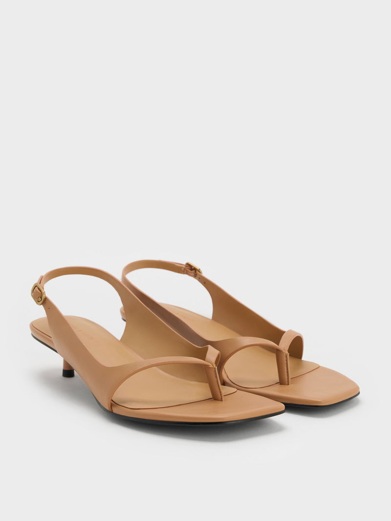 Rayne Square-Toe Kitten-Heel Thong Slingback Sandals