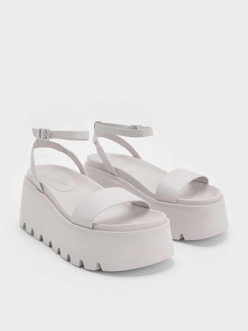 Ridged-Sole Ankle-Strap Flatform Sandals