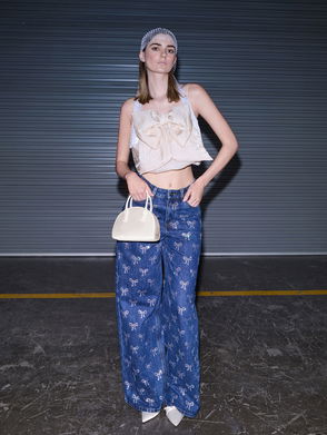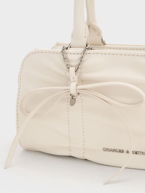 Get heads turning with this outstanding piece. Match this red ring handle bowling bag with a puff sleeve top and printed skirt for maximum effect. Adjustable strap (detachable).