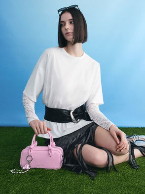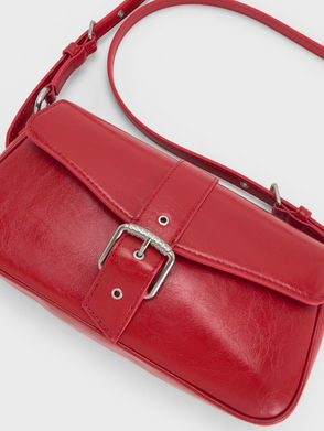 Look bold and beautiful when you make an entrance with this gorgeous rose-red shoulder bag on your arms. Featuring a ring embellishment for added pizzazz, plus two types of adjustable straps, including a chain link, this striking choice will upgrade a crochet dress for an ultra-feminine look that you will love for seasons to come.