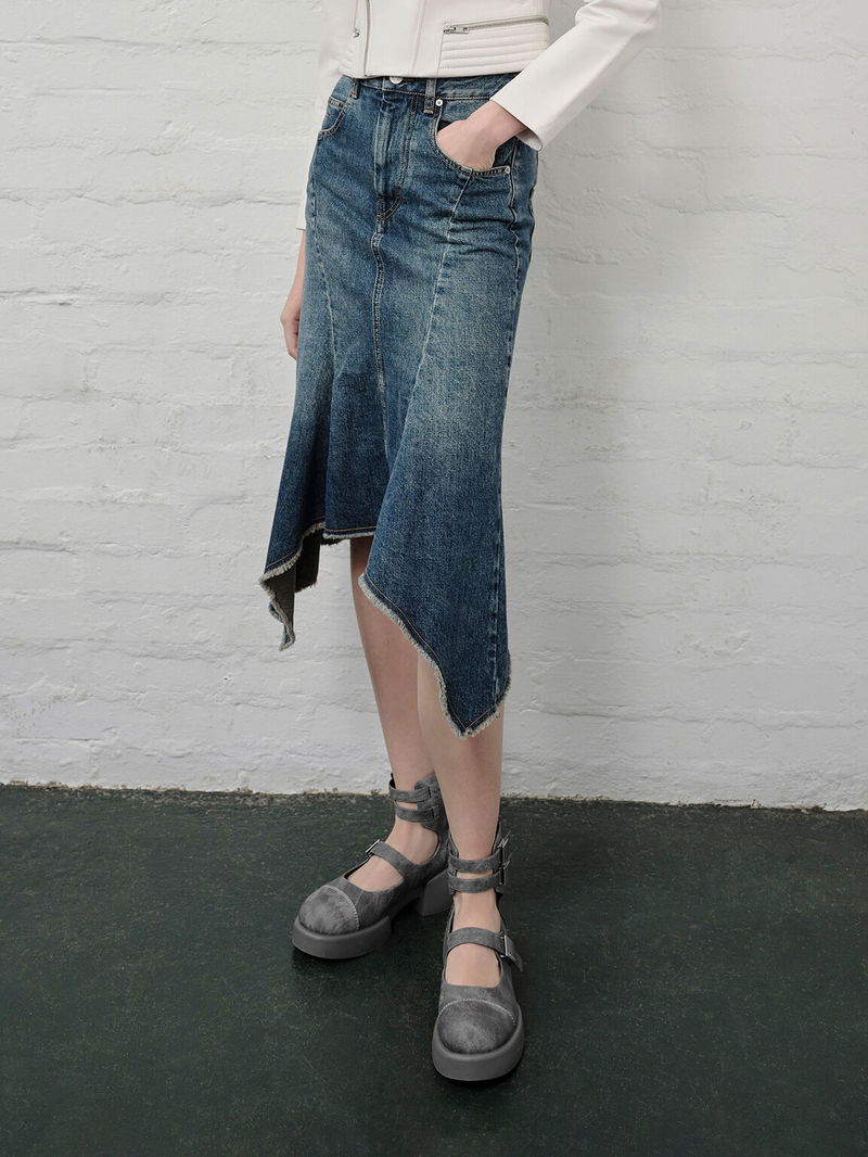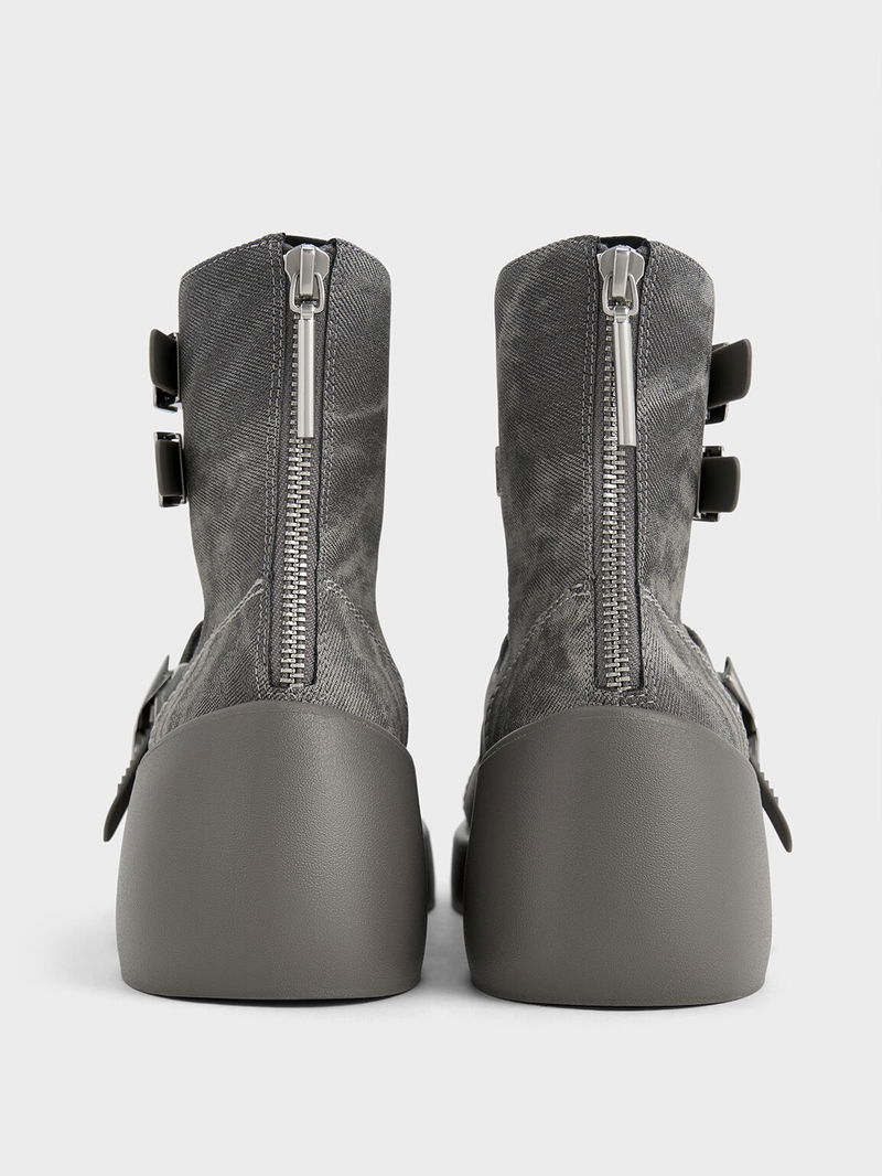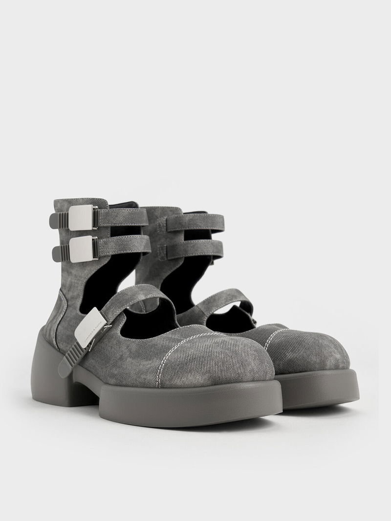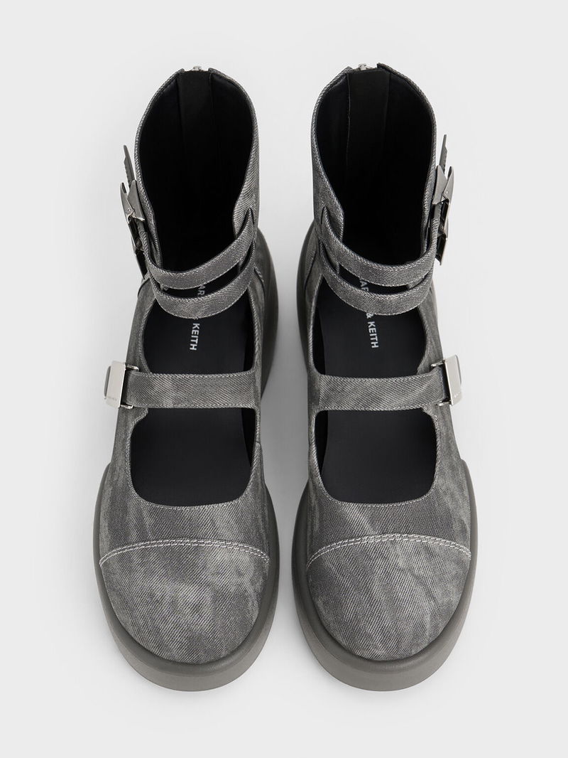 Robbie Denim-Effect Ankle-Strap Mary Jane Boots