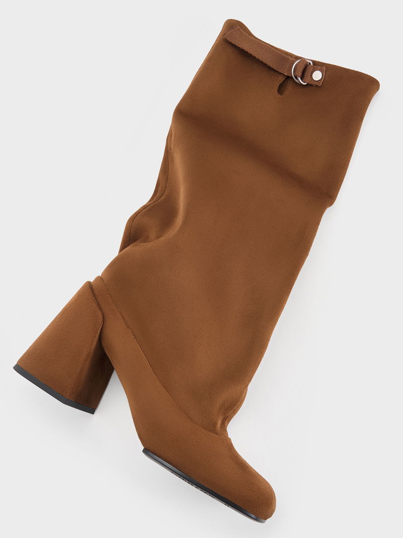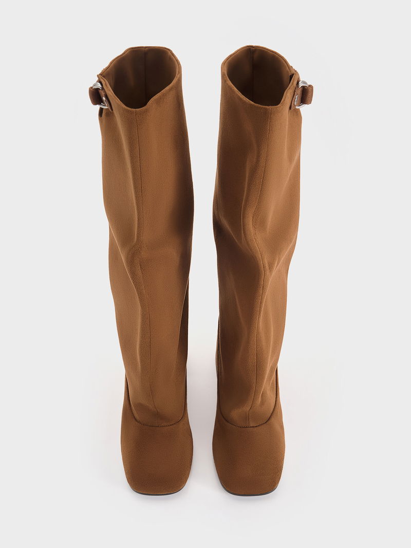 Robbie Faux Suede Side-Buckle Block-Heel Knee-High Boots